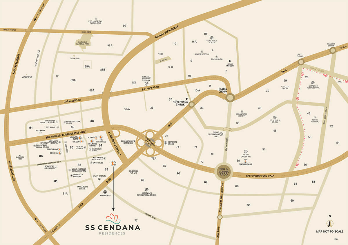 Located in Sector 83, New Gurugram, SS Cendana is within minutes of NH 48, Dwarka Expressway, and all the well established social infrastructure of the buzzing millennium city.